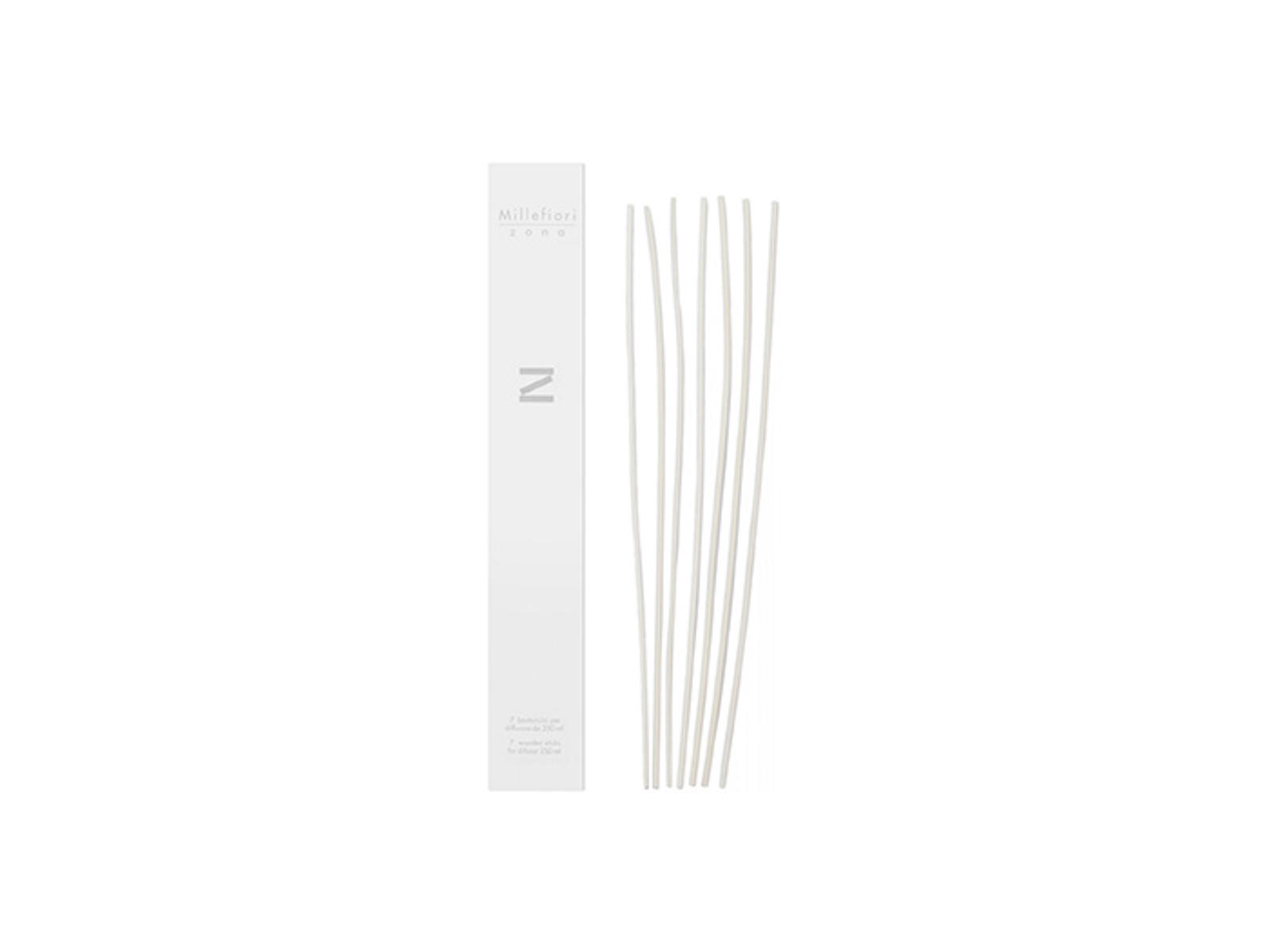Millefiori Zona White Sticks For Diffuser 250ml - 7 pcs er en pakke med 7 hvide diffuserpinde, som er designet til at sprede en behagelig duft i dit hjem eller på kontoret.