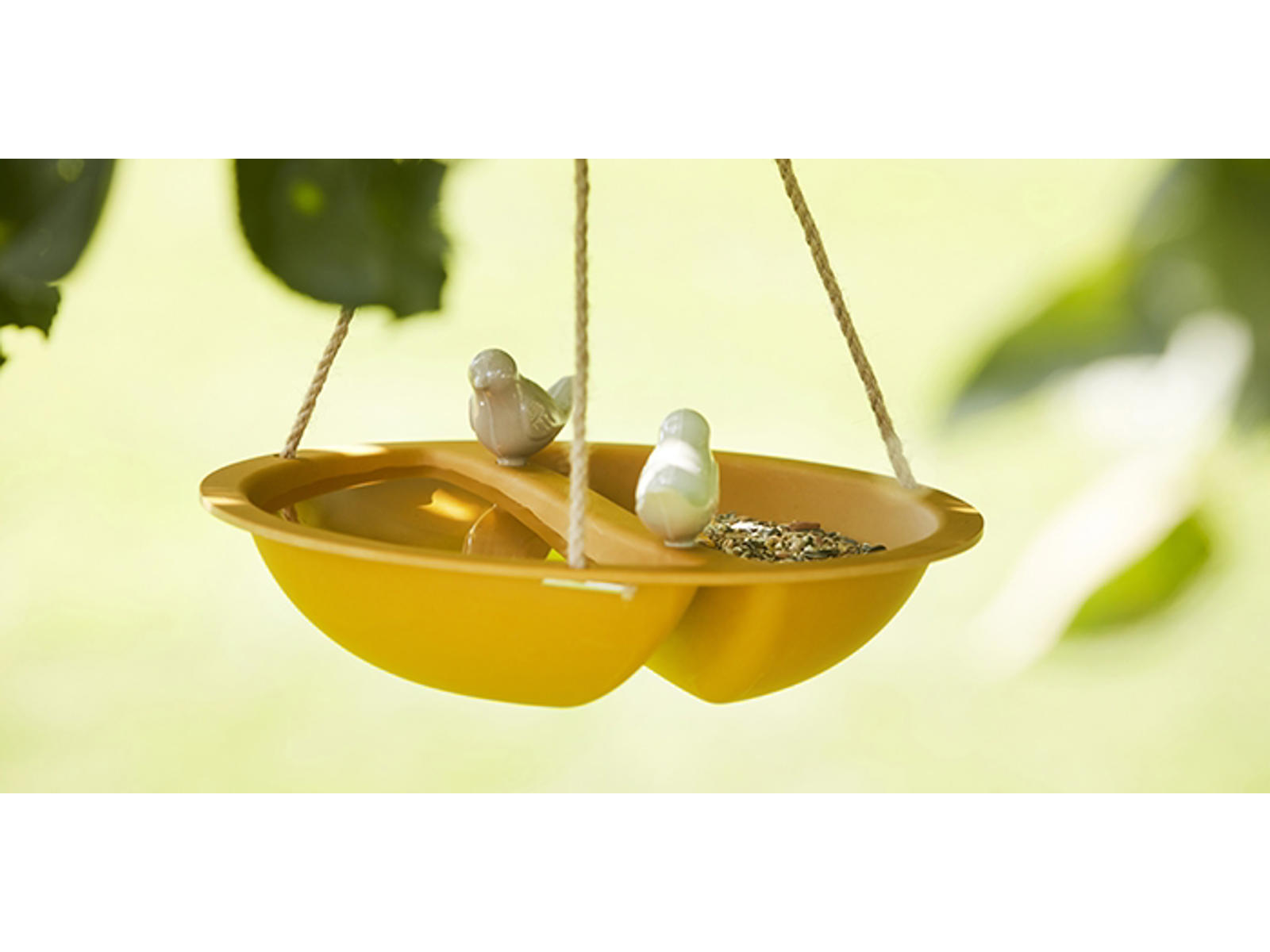 Dette alsidige og smukt designede produkt kombinerer funktionen af både en fuglebad og en fuglefeeder i en enkelt enhed. Lavet af bæredygtig bambusfiber og udført i en livlig gul okkerfarve, er dette produkt en farverig og funktionel tilføjelse til din have eller udendørs område.