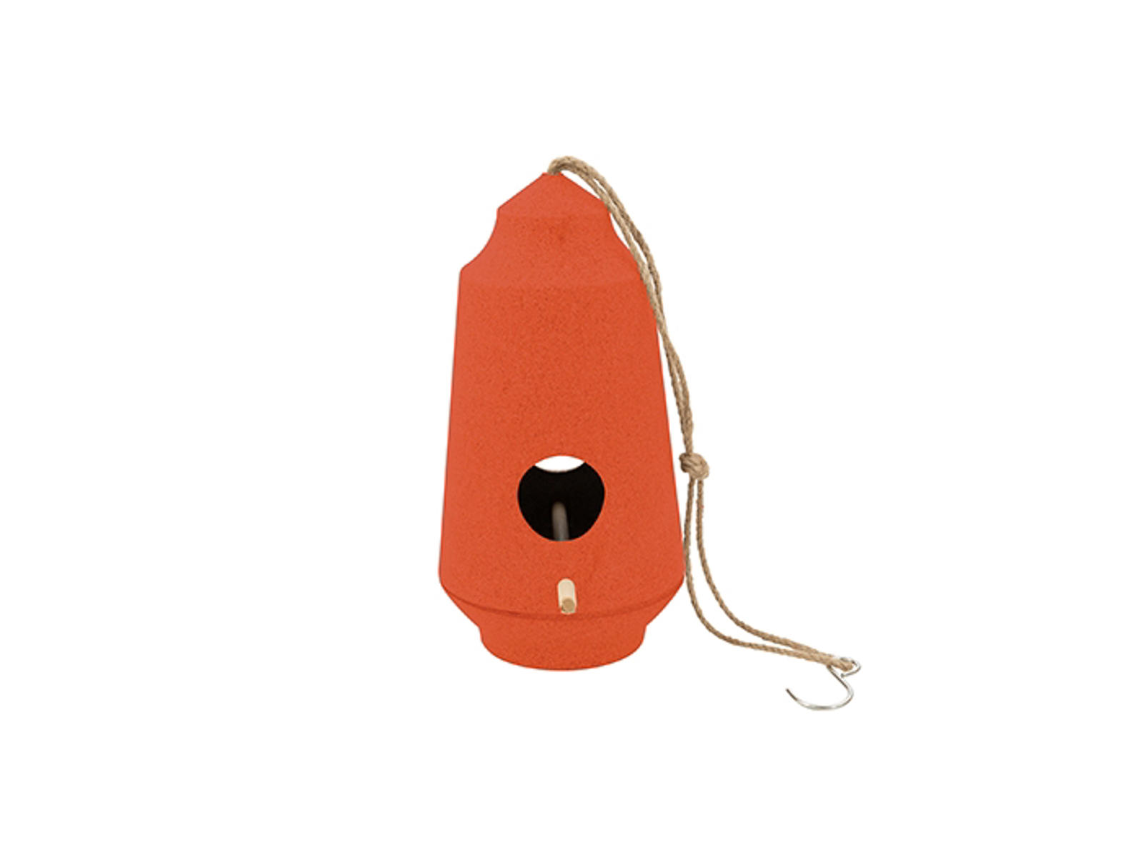 Design: Dette fuglehus er udført i en livlig orange farve, der tilfører friskhed og glæde til din have. Det har et unikt og iøjnefaldende design, der vil tiltrække opmærksomhed fra både fugle og haveentusiaster.