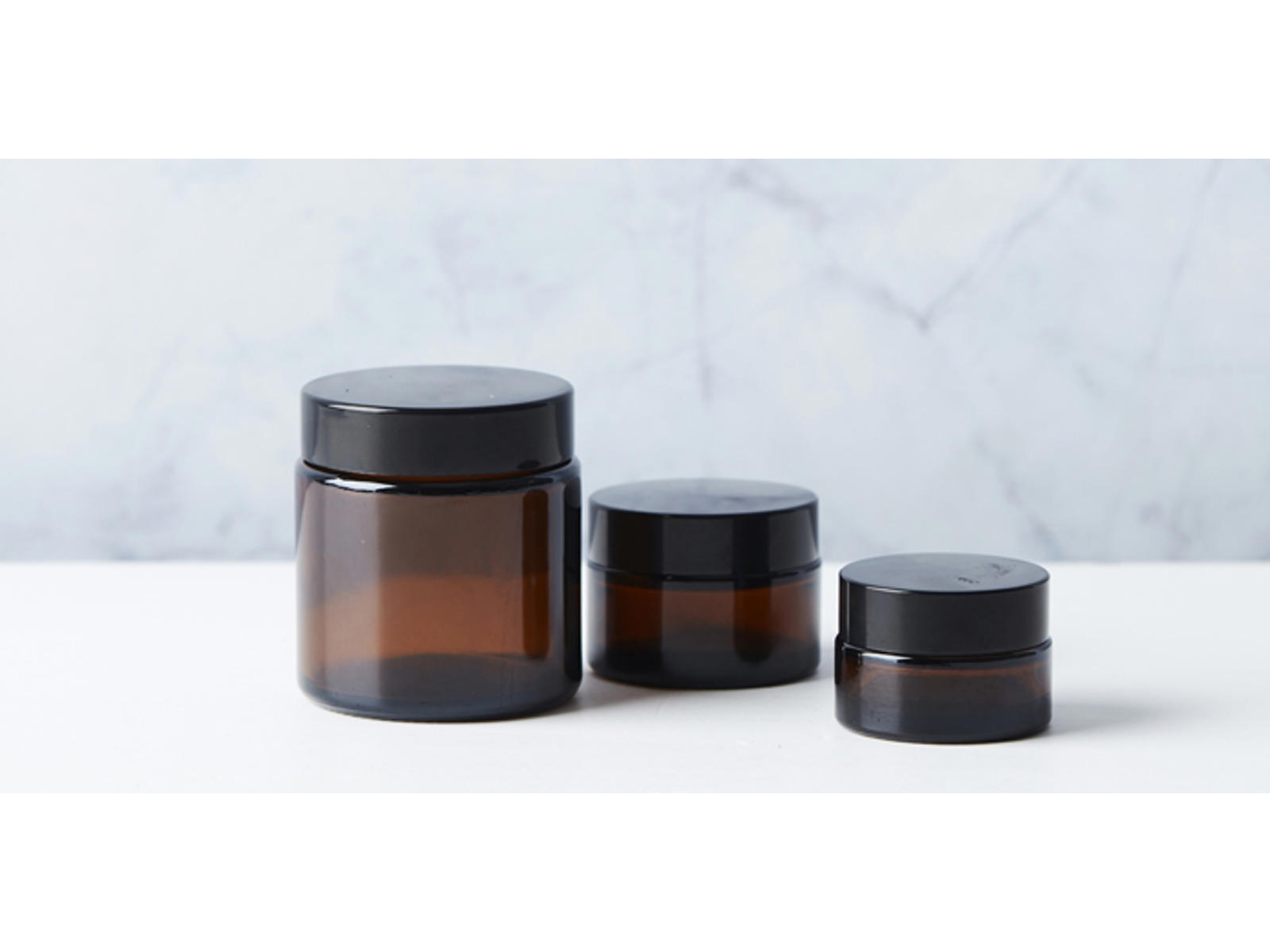 Dette sæt med tre smukke kosmetikglas i ravfarve er perfekt til opbevaring af dine kosmetiske produkter, cremer, lotioner og andre skønhedsartikler. De er fremstillet af holdbart glas og har en tidløs og elegant æstetik, der passer til enhver skønhedsindretning.