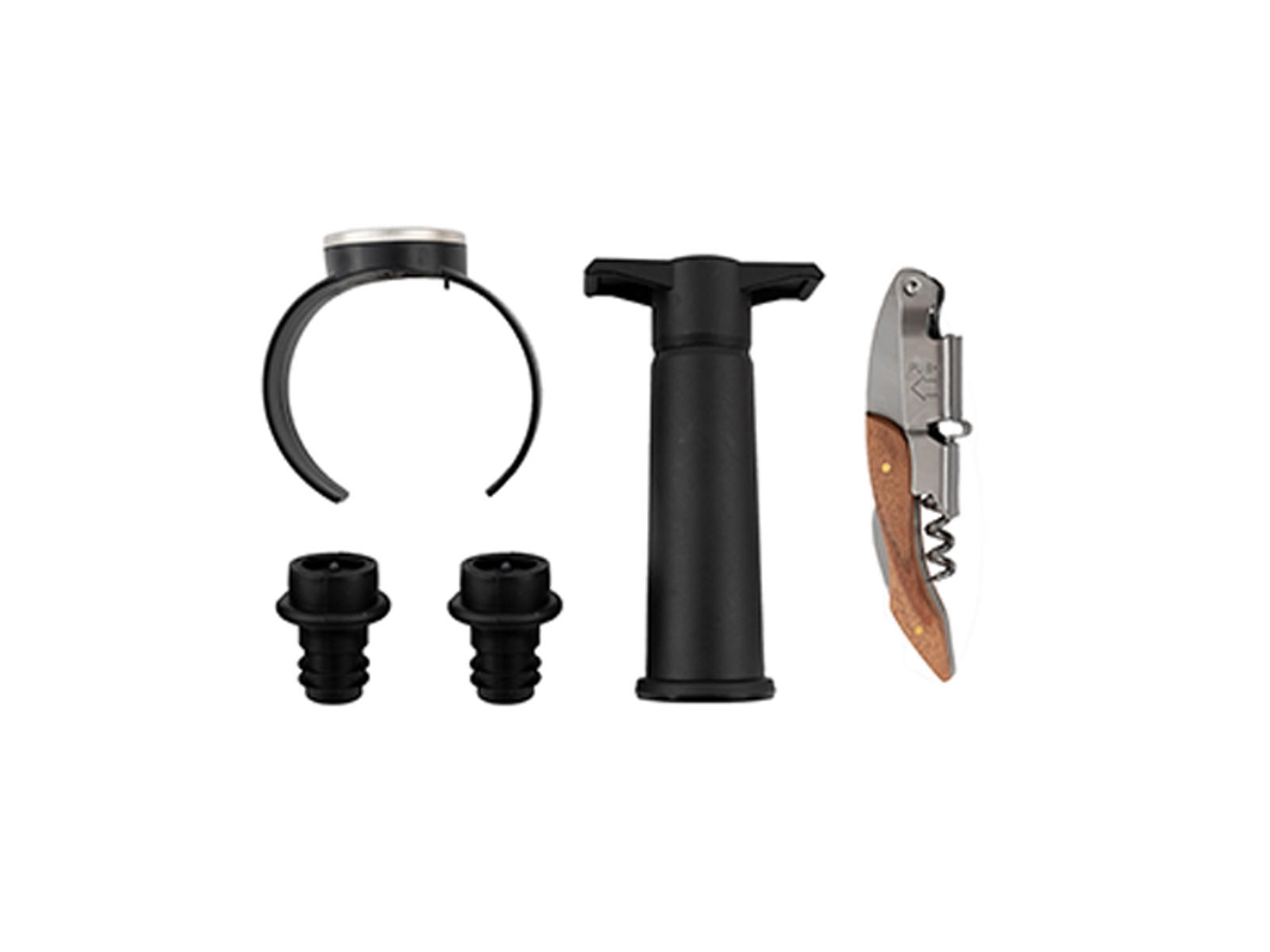 Vinbevarende pumpe: Den medfølgende vinbevarende pumpe hjælper med at forsegle åbnede vinflasker lufttæt og bevare smagen og kvaliteten i længere tid. Den inkluderer også to stopperpropper.
