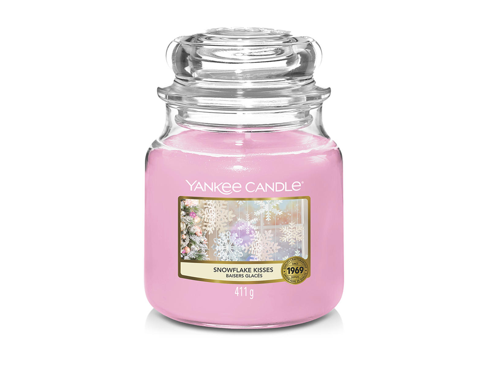Yankee Candle Classic - Medium - Snowflake Kisses. Fang det kølige kys fra et snefnug med pudderagtige noter af viol, rose og hvid moskus.