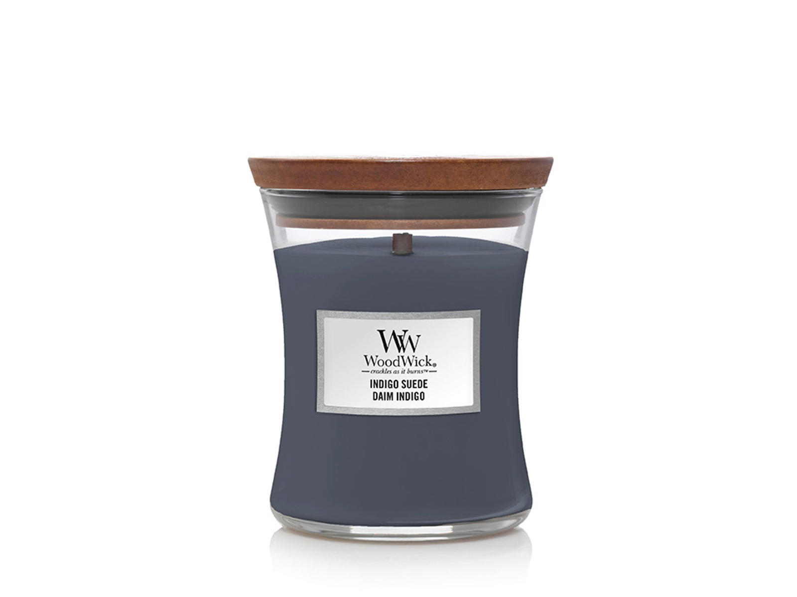 • WoodWick Medium Duftlys – Indigo Suede