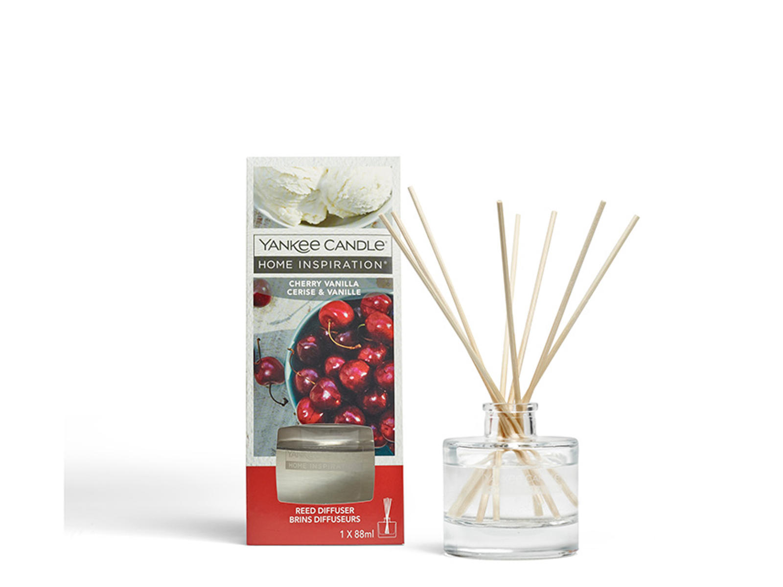 Forkæl dit hjem med en indbydende og forførende duftoplevelse med Yankee Candle Home Inspiration - Reed Diffuser - Cherry Vanilla. Denne elegante duftdiffuser er designet til at skabe en hyggelig og behagelig atmosfære, der fylder rummet med den søde og frugtagtige aroma af modne sorte kirsebær kombineret med vanilje og bløde noter af marshmallow. Perfekt til ethvert rum, hvor du ønsker en vedvarende og luksuriøs duft.